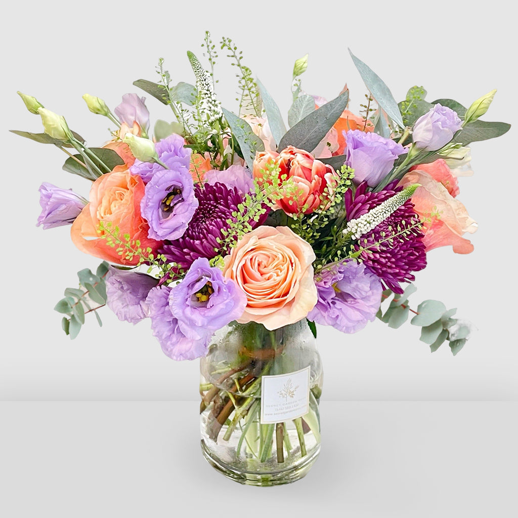Pleasant patchwork of pastels. This playful batch of exquisite pastels is perfect for that just because kind of moment. Sometimes you don't need a reason to treat yourself or others and this bouquet of vibrant hues sets that tone flawlessly. This is a popular choice among young couples and veteran spouses alike.